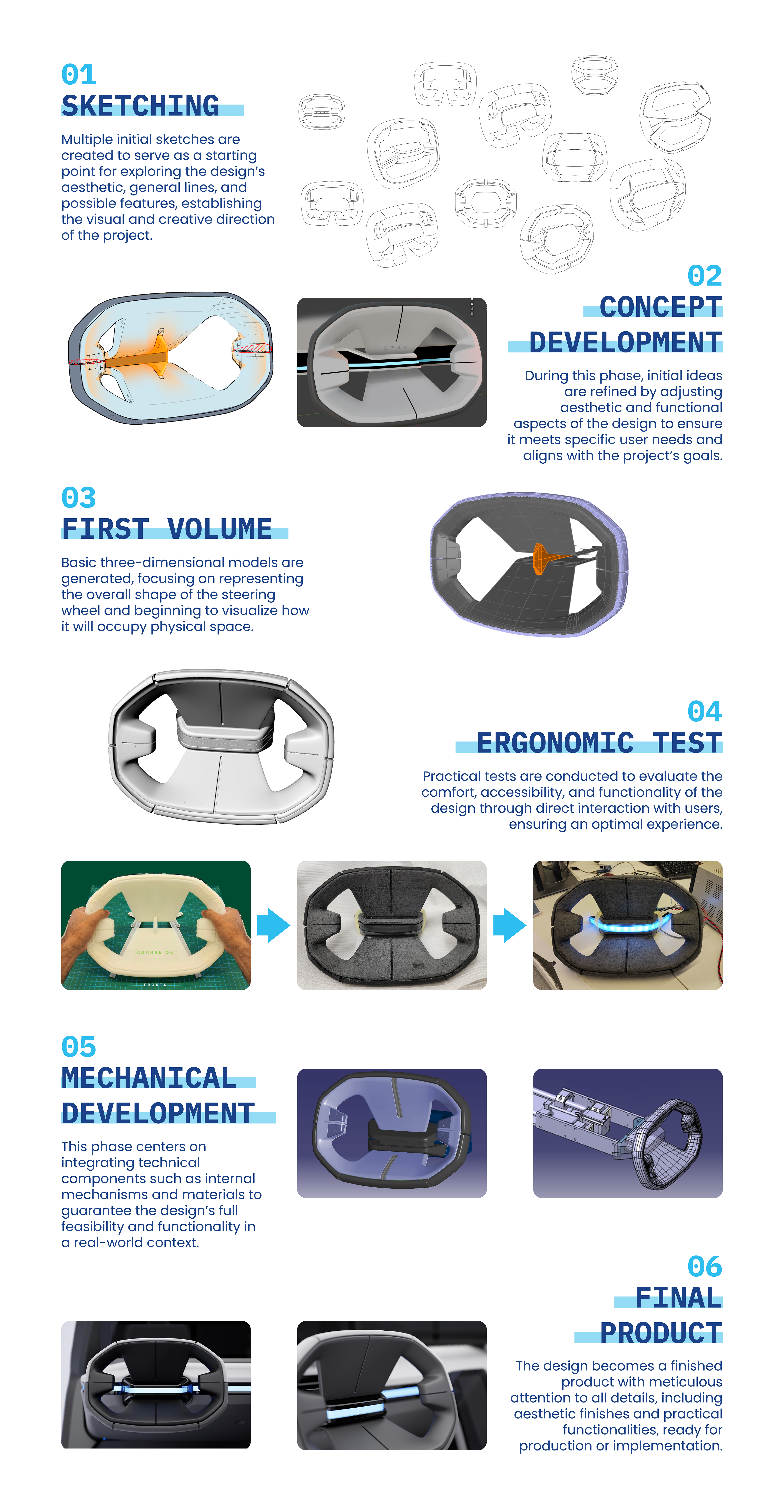 From this stage, an iterative and cross-functional process begins between different departments until the optimal solution is reached. Whenever relevant, we seek to materialize our proposals in our volume and form laboratory, allowing us to verify that the ergonomics and design meet expectations before moving forward with the final development.