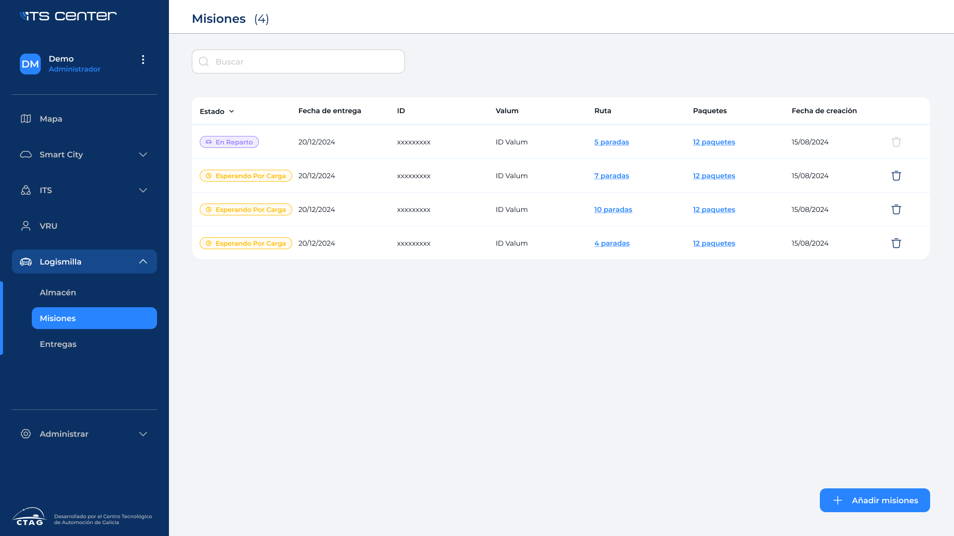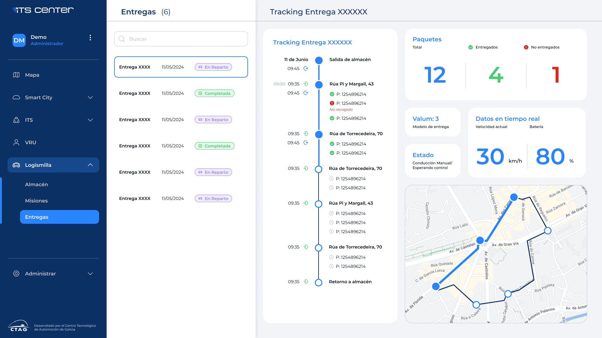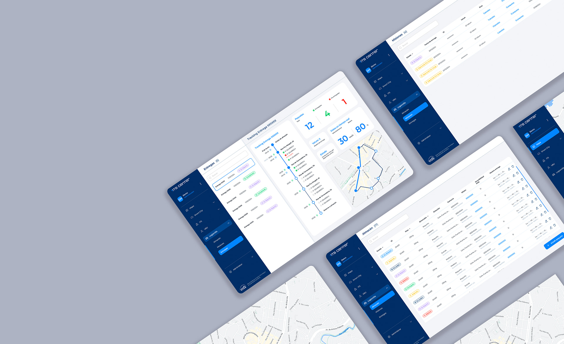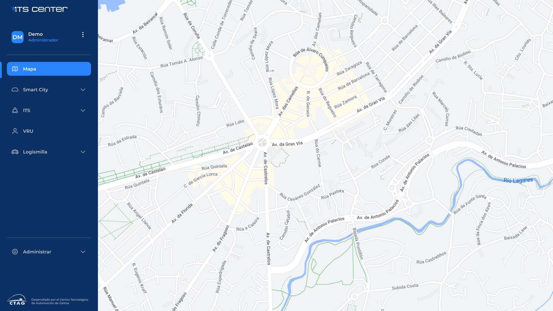 The ITS Center is a management and visualization platform for Ctag's cooperative system. In terms of interface, the main objective was to design a website that would reflect, in a clear and orderly manner, the large amount of information that needs to be displayed, as well as the multitude of operations that the operator can perform.