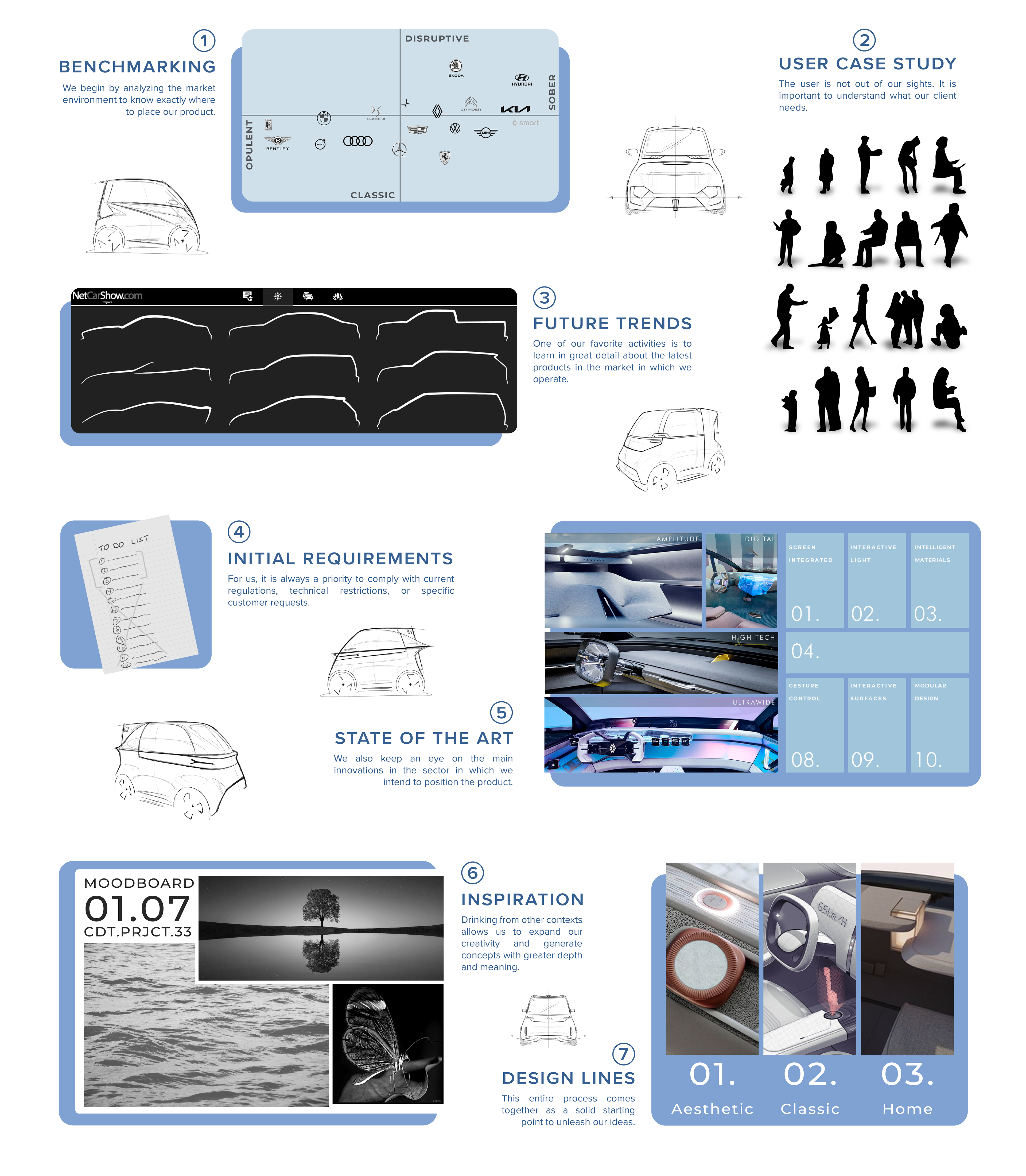 We gain in-depth knowledge of consumers and competitors, identifying what users are looking for and what products or services already exist. We continuously study market trends to detect changes in styles, technologies, and preferences, ensuring that our designs remain relevant and forward-thinking. Likewise, we stay up to date with innovations, patents, and notable developments.